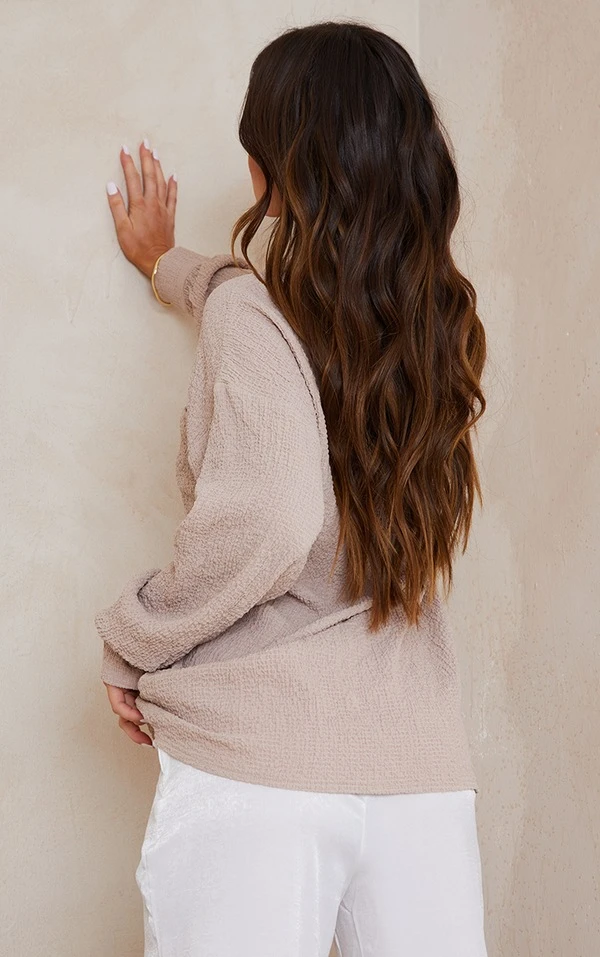 Chemise café au lait oversize texturée à poche frontale