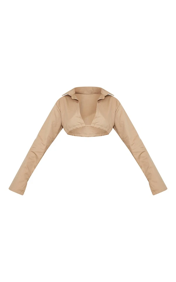 Chemise courte en maille sergée gris pierre à dos ouvert