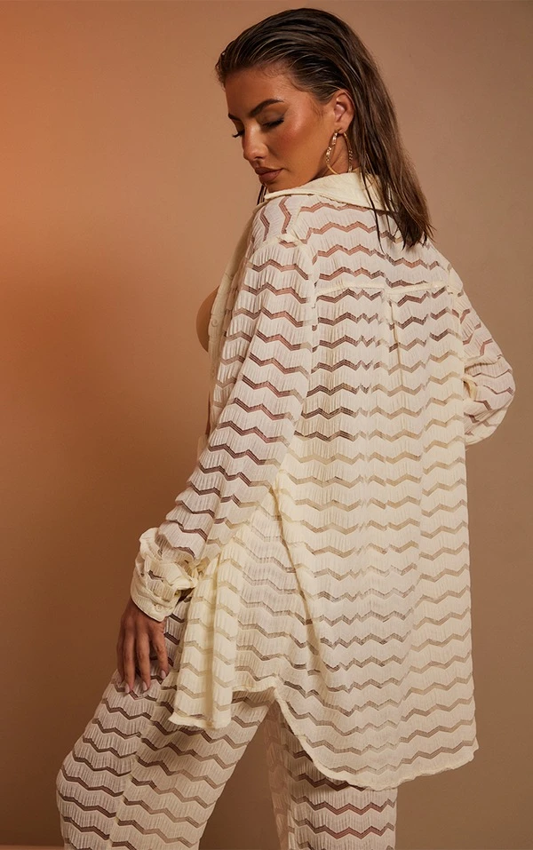 Chemise de plage oversize crème texturée