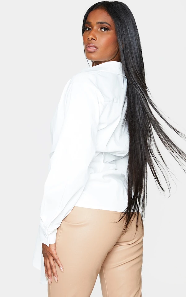 Cute, cette chemise blanche ! On l’adore avec sa maille tissée légère, son design noué devant et sa coupe classique. Il ne manque plus qu’un pantalon skinny et des talons pour la tenue complète. 3