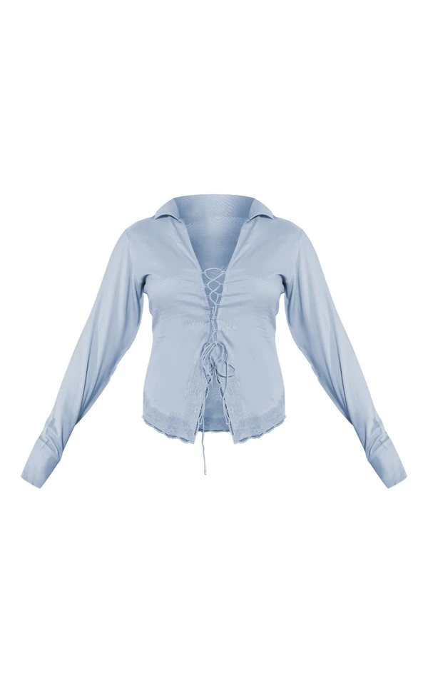 In love de cette chemsie lacée ! Avec sa couleur bleu gris et son ourlet en dentelle, on ne peut que valider. Elle se porte avec un pantalon cargo et une paire de mocassins pour un look qui fera tourner toutes les têtes. What a babe !