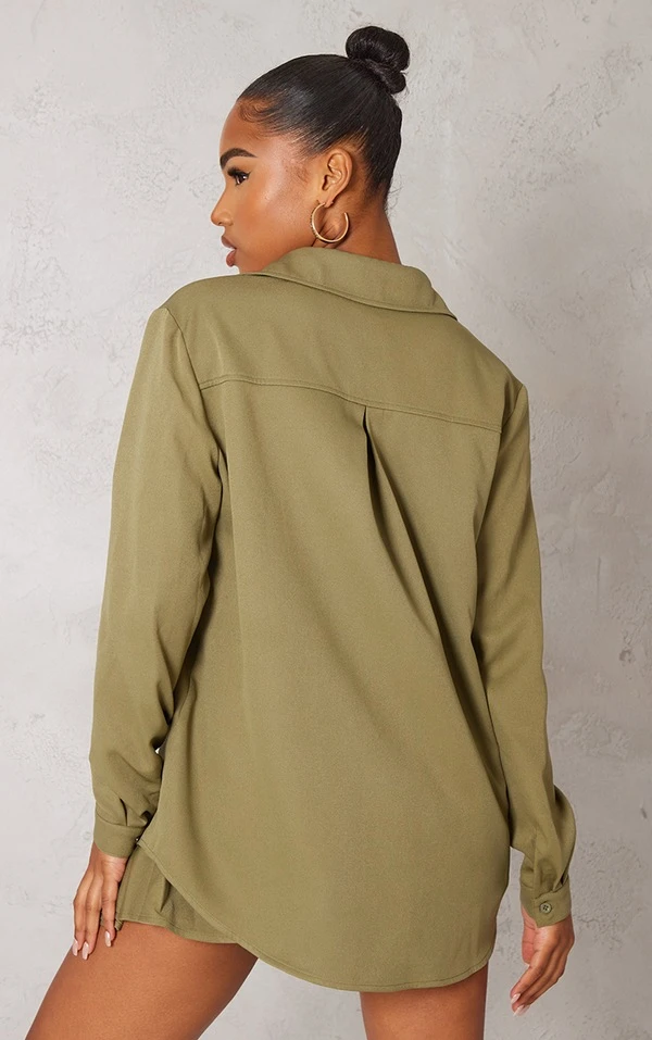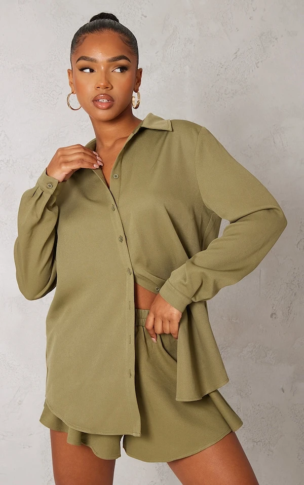 Stylée dans cette chemise ! On adore sa matière kaki, ses manches longues et sa coupe oversize. Ne reste plus qu’à enfiler le short assorti, des bottes montantes et une pochette pour un look qui va marquer les esprits ce week-end.