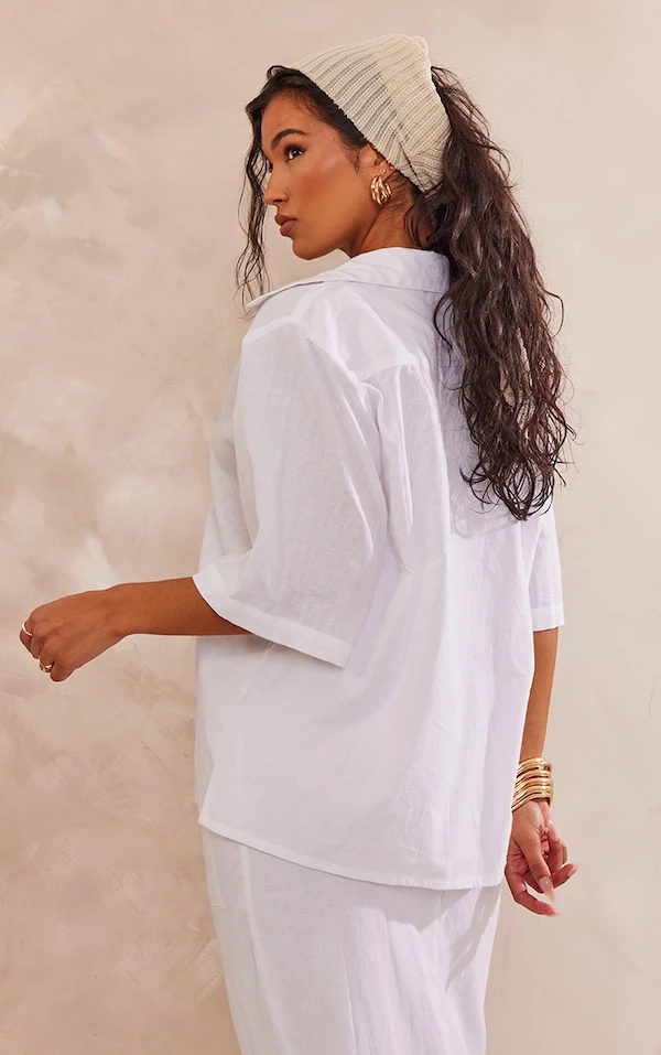 En amour cette chemise oversize. Avec la couleur blanche de sa matière en maille tissée et son design à épaules carrées, elle a tout pout plaire. Pour une balade au soleil, portez cette chemise avec la jupe assortie, une paire de claquettes et quelques accessoires. Vous êtes stylée à tout moment de la journée !