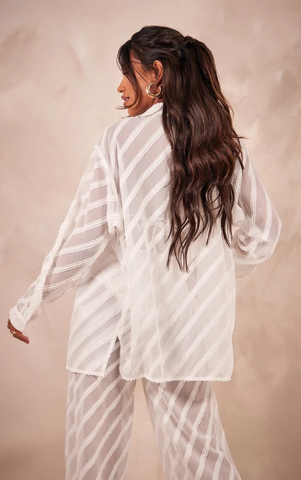 Chemise oversize blanche en mousseline de soie texturée à boutons
