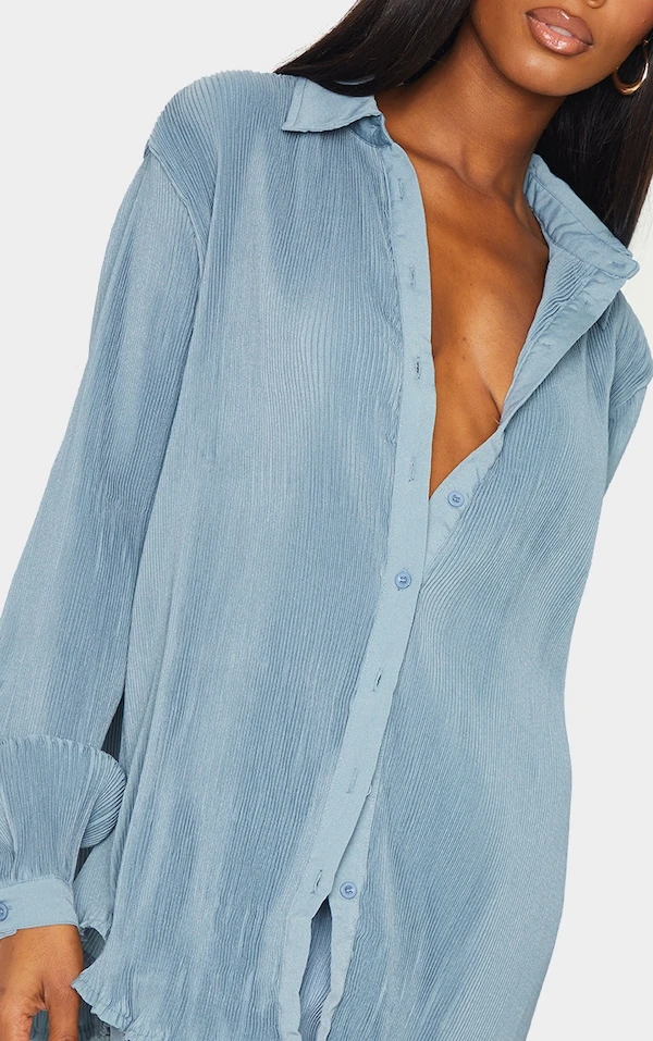Chemise oversize bleu acier plissée à boutons devant