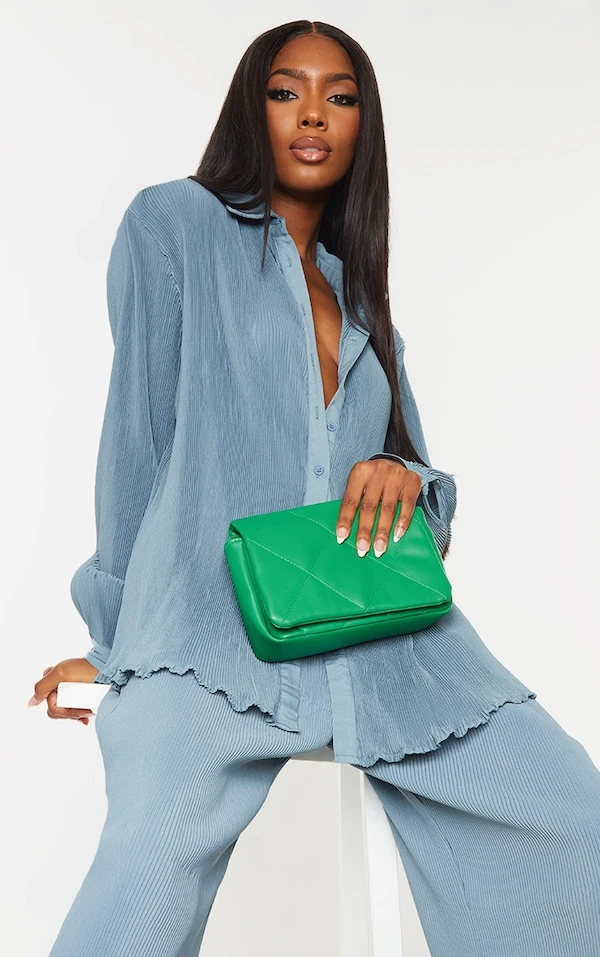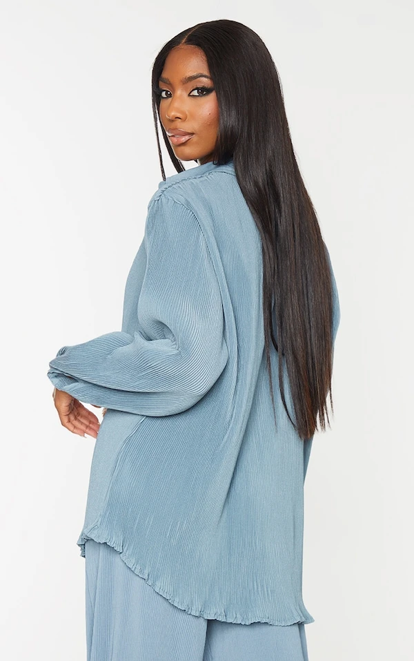 Juste gorgeous cet ensemble plissé, il vous va si bien. On aime beaucoup la chemise à la coupe oversize, aux boutons sur l’avant et au style très classy à porter avec le pantalon assorti. 3