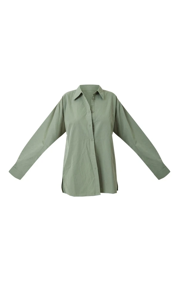 Chemise oversize boutonnée en maille tissée vert sauge kaki