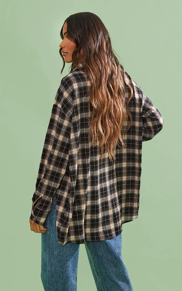 Chemise oversize chocolat à carreaux et poches