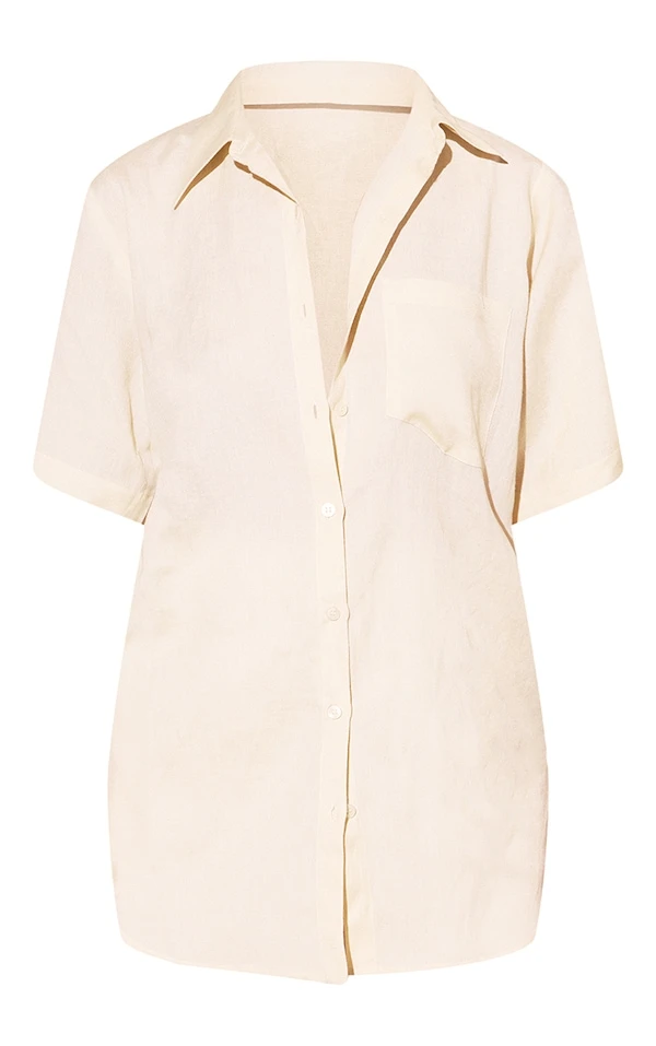 Chemise oversize effet lin gris pierre à manches courtes