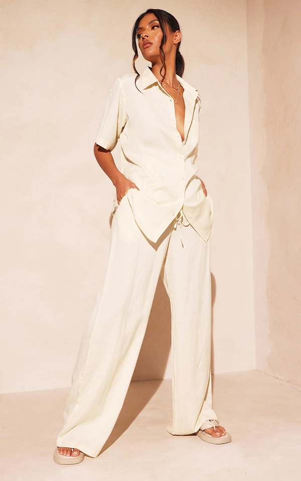 Canon la chemise oversize ! Avec son effet lin, ses manches courtes et son coloris gris pierre très doux, elle nous a fait craquer. Il ne manque que le bas assorti et une paire de mules !