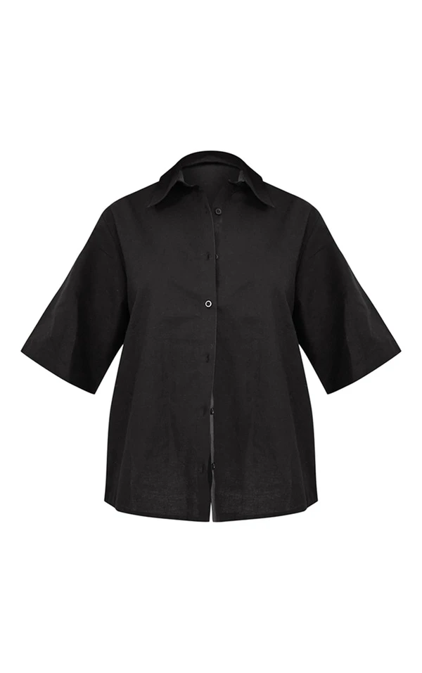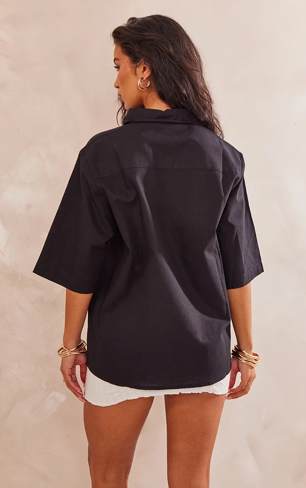 Chemise oversize en effet lin noir à manches courtes