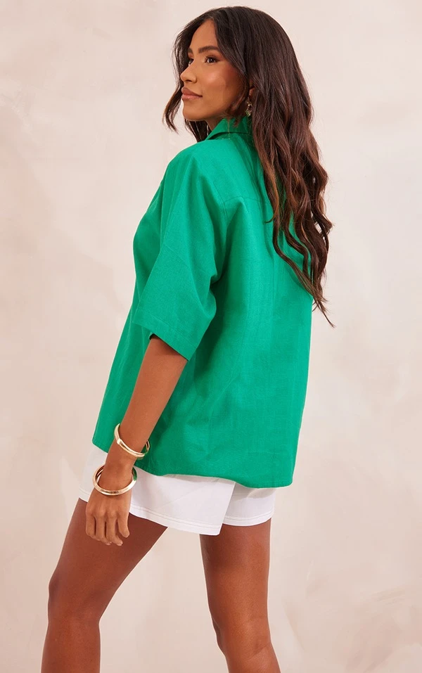 On aime tellement cette chemise oversize ! Avec son coloris vert qui porte chance et sa matière en effet lin très tendance, c’est notre petit coup de coeur du moment. On enfile un short fluide blanc et une paire de mules plates pour compléter le look. La reine du style, vous !