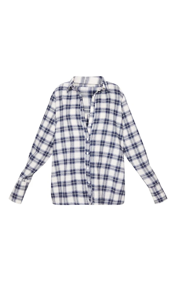 Chemise oversize en flanelle blanche à carreaux