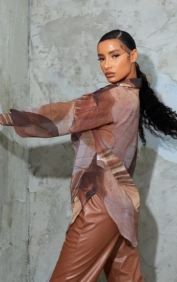 In love de cet imprimé abstrait! Sur cette chemise à la coupe oversize et à la maille beige très canon, c’est impossible de résister.