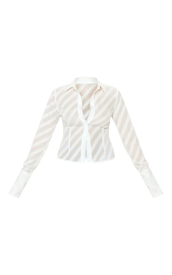 Chemise oversize en mousseline de soie blanc cassé texturée à boutons
