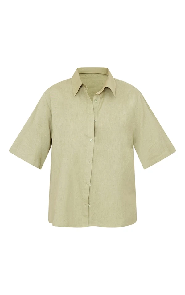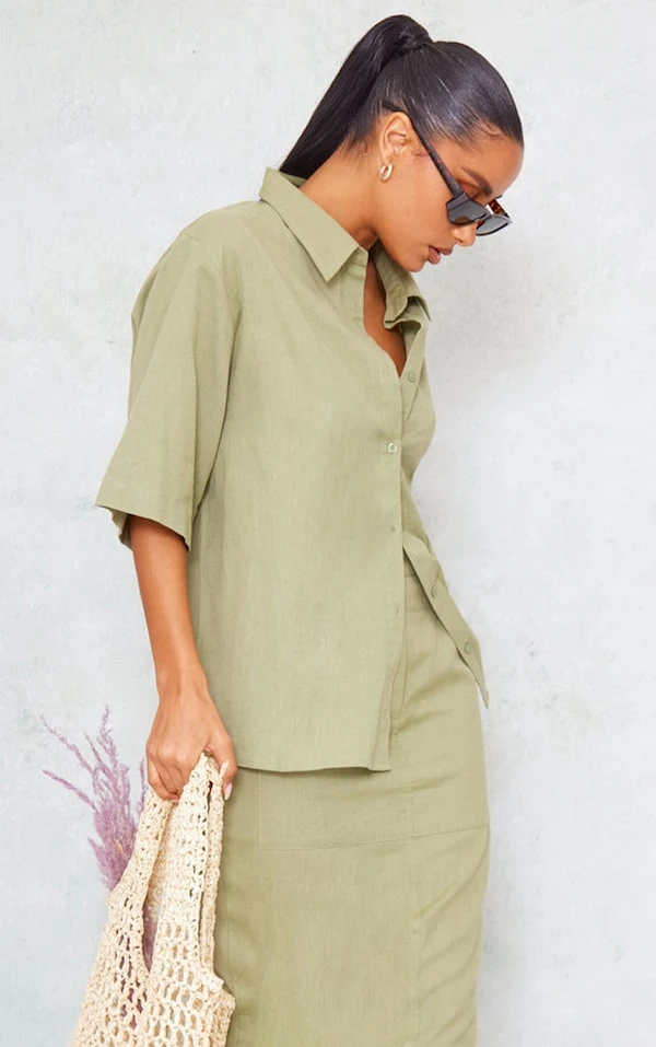 Chemise oversize kaki effet lin à épaules carrées