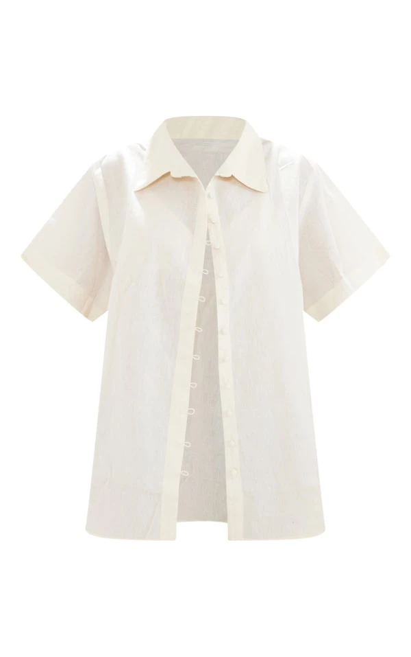 Direct dans le panier la chemise à la coupe oversize, elle est tellement jolie ! Avec sa matière en effet lin, son coloris crème hyper doux et ses boutons sur l’avant, c’est impossible de se louper. Elle est parfaite pour les beaux jours qui reviennent avec une jupe et une bralette. On est totalement fans.