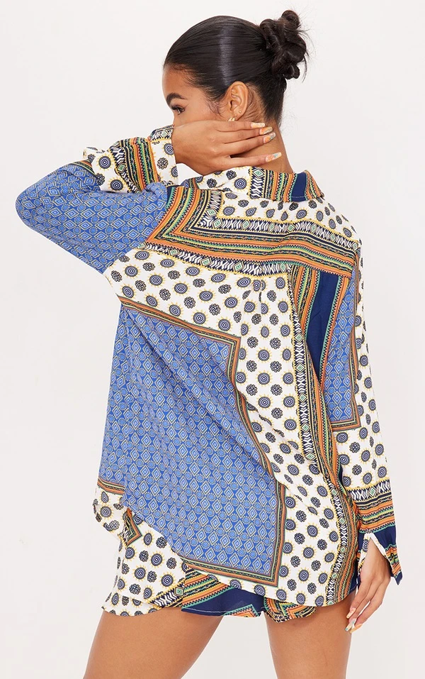 Chemise oversize multicolore imprimé chaîne à manches longues