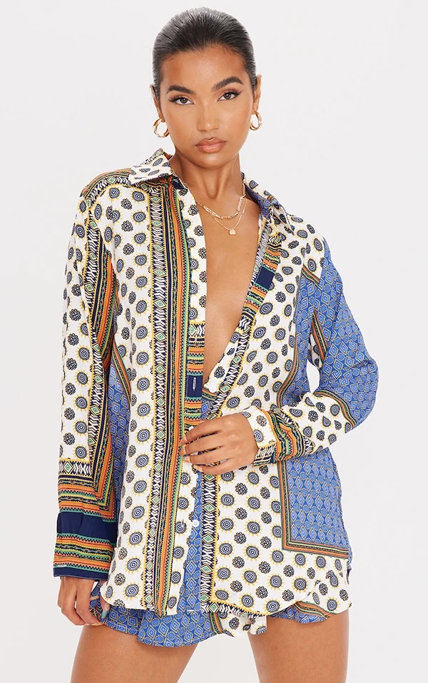 Totalement fans de cette chemise à la coupe oversize canon avec son imprimé multicolore. On aime son design à manches longues que l’on porte avec le short fluide de la même couleur et une paire de sandales pour un look aussi culte que vous.