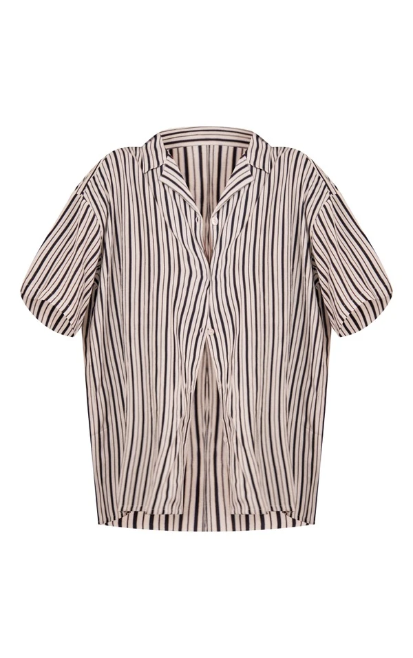 Chemise oversize noire rayée à épaules carrées et manches courtes