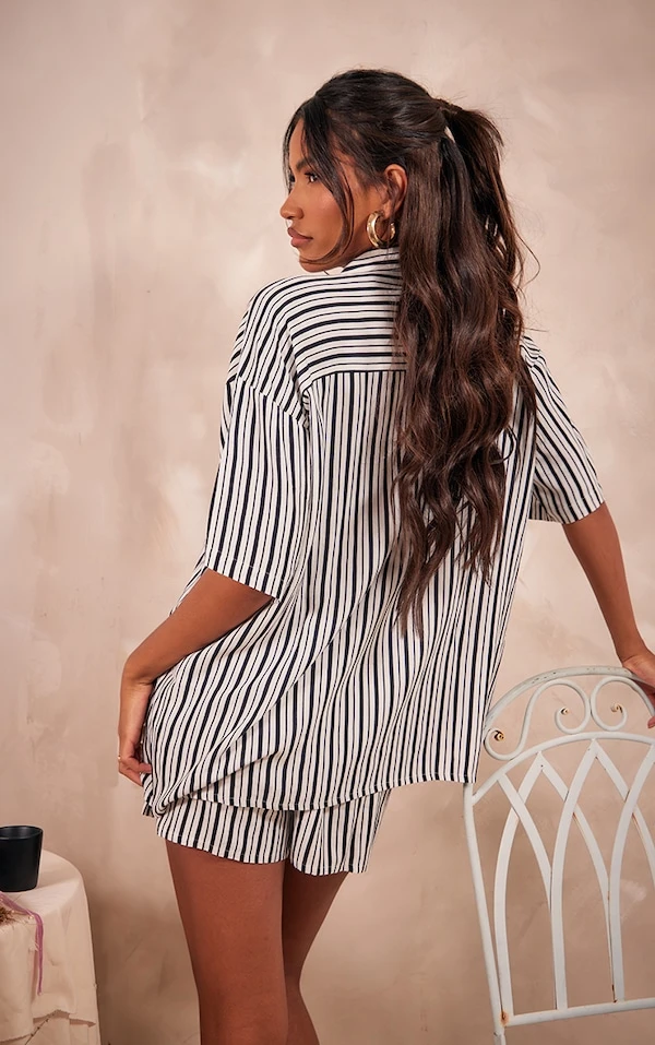 On craque pour cette chemise ! Avec sa couleur noire, ses rayures canon et son design à épaules carrées, il a tout pour plaire. Il vous suffit de le porter avec le short assorti et des sandales pour chiller avec un max de style. Crush sur vous !