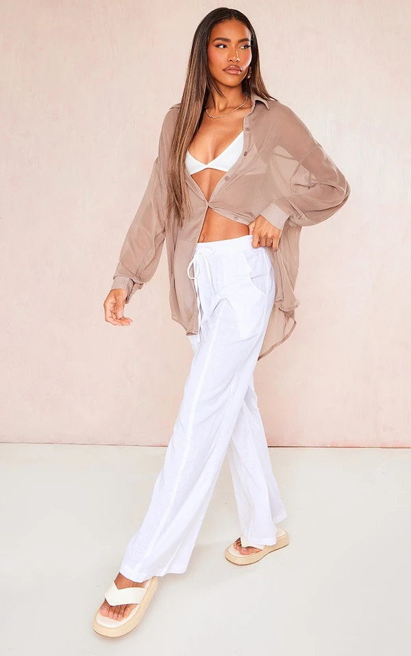 Chemise texturée café au lait à boutons dans le dos