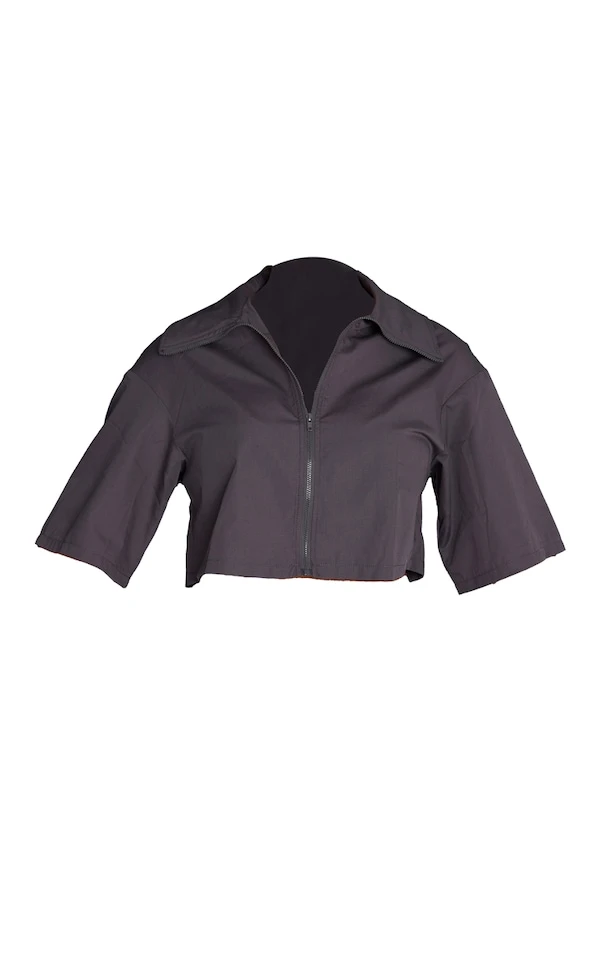 Chemise tissée gris anthracite à zip et manches courtes