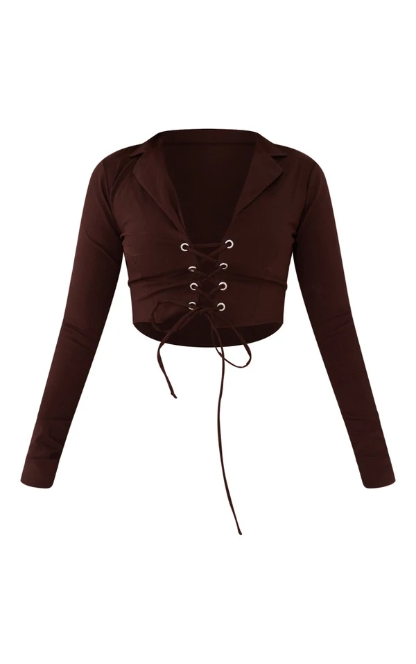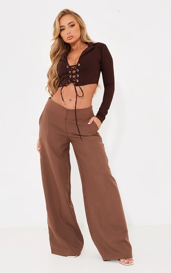 Clairement un must-have, cette chemise ! Avec la gourmandise de sa couleur chococlat, sa matière tissée stretch et son design à lacets très stylé, on est in love. Portez-la avec un pantalon à pinces taille haute pour un look de bureau canon. Direction le taf !