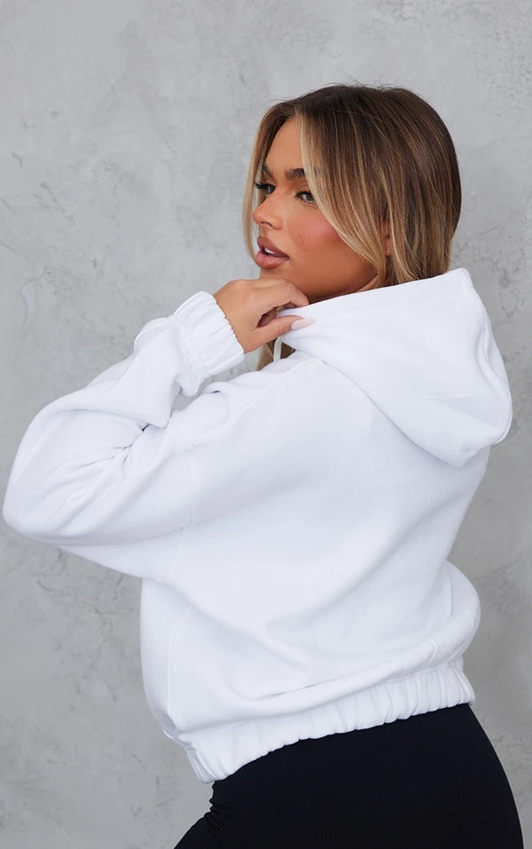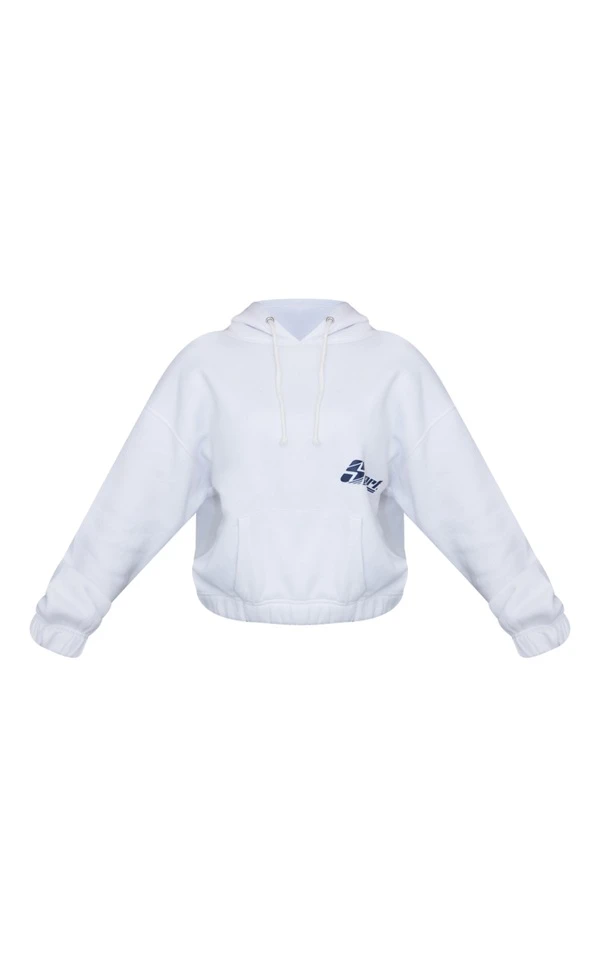 Hoodie blanc à imprimé Sport et ourlet élastique