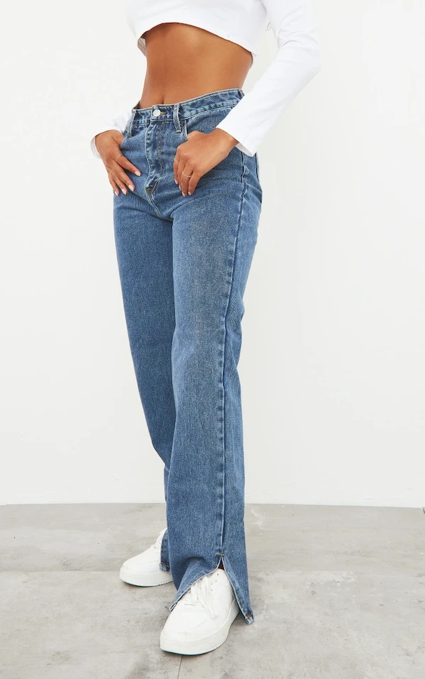Jean bleu effet vintage à ourlet fendu