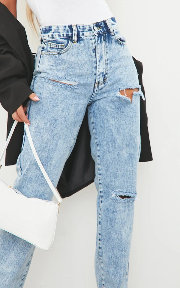 La base des bases ce jean les filles. Il est couleur bleu glacier, à ourlet fendu et au design déchiré très cool. Plus qu’à le porter avec une blouse satinée et des talons. Quelle classe!