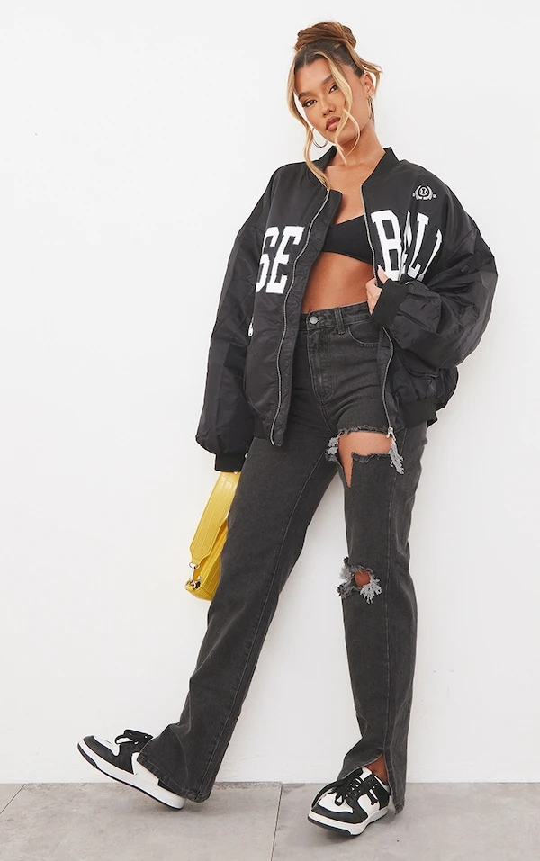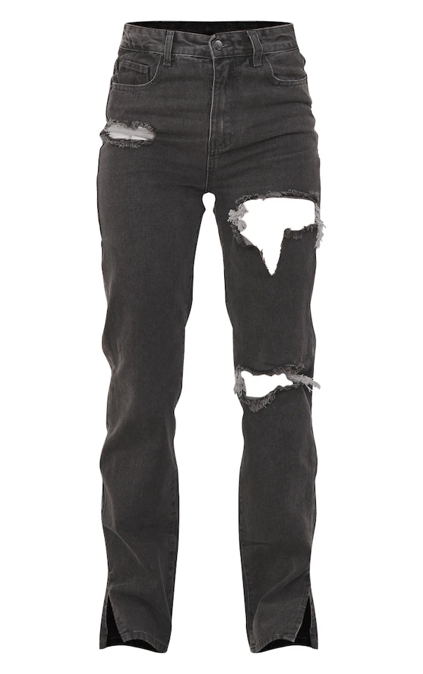 Fans inconditionnelles du jean fendu! On a craqué sur ce modèle aux déchirures grunge et au gris délavé indémodable… Il se porte en toute facilité avec un sweat et des baskets. Le crush!