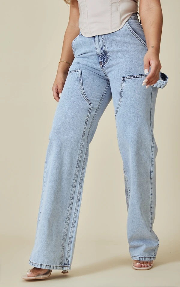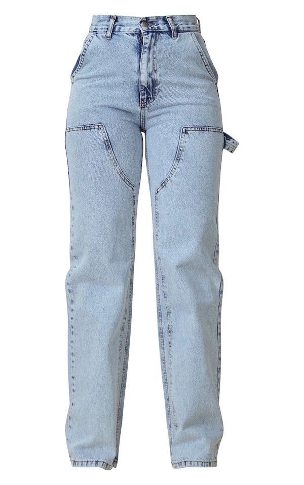 Jean droit bleu clair délavé à détail coutures et parties contrastantes