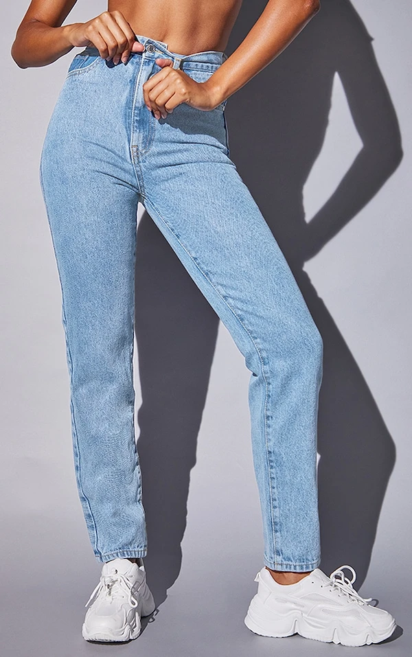 Absolument fans de ce jean canon ! Avec sa coupe droite et son délavage bleu clair, c’est un classique de la garde-robe. On le porte avec tout et surtout un crop top et des baskets !
