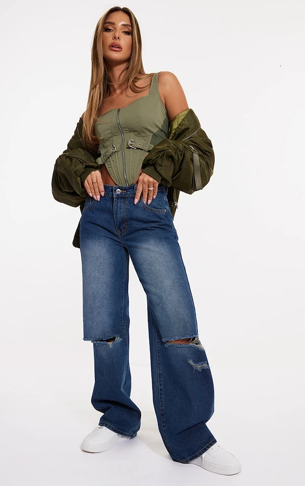 Le crush est immédiat sur ce genre de pièce ! Ce jean est à tomber avec sa coupe droite flatteuse, sa taille basse canon et son design à genoux déchirés. On l’aime porté avec un débardeur moulant et une veste oversize pour contraster. Vous avez tout compris !