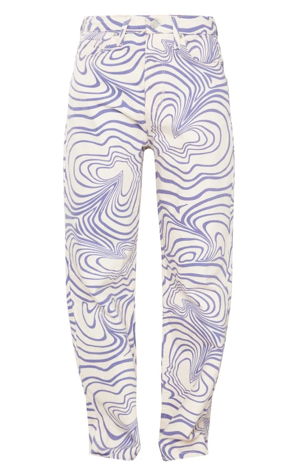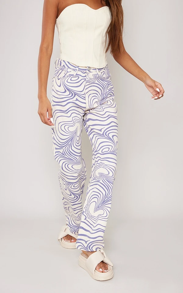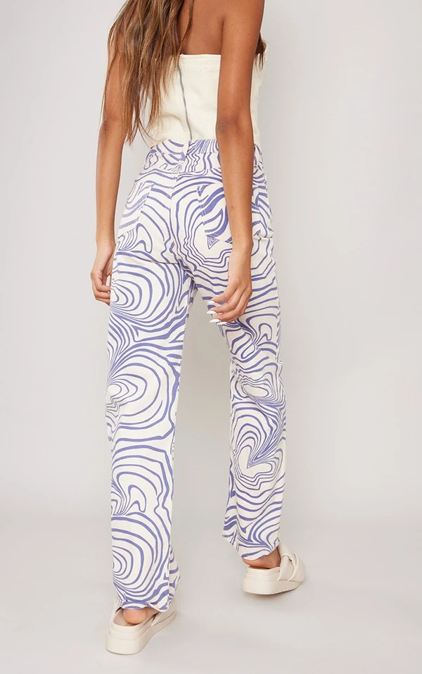 Jean droit écru imprimé vagues