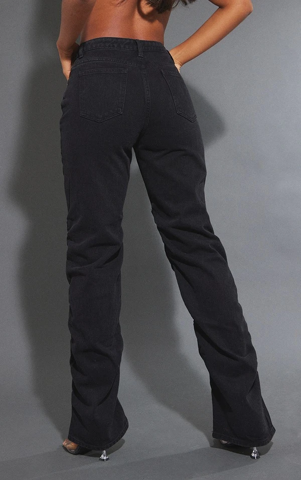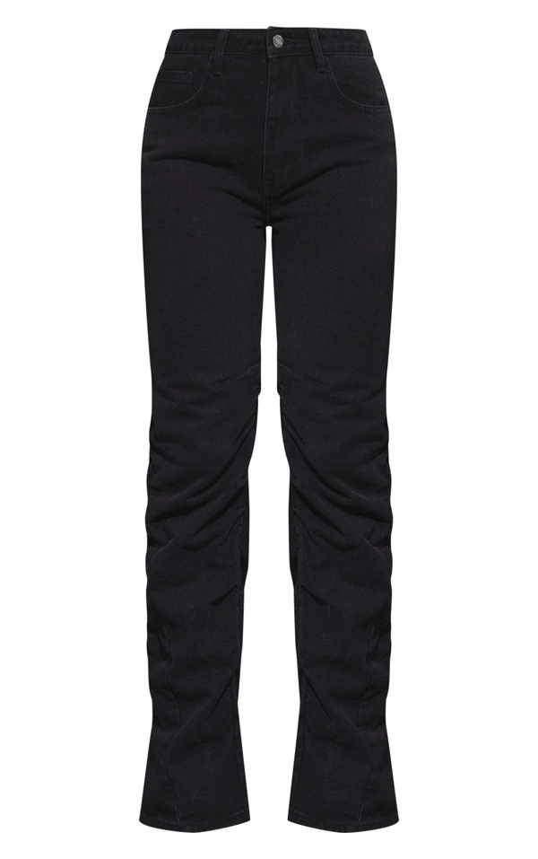 Jean droit froncé délavé noir