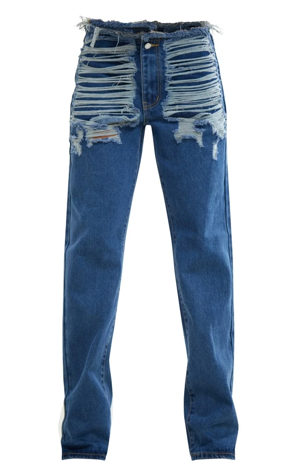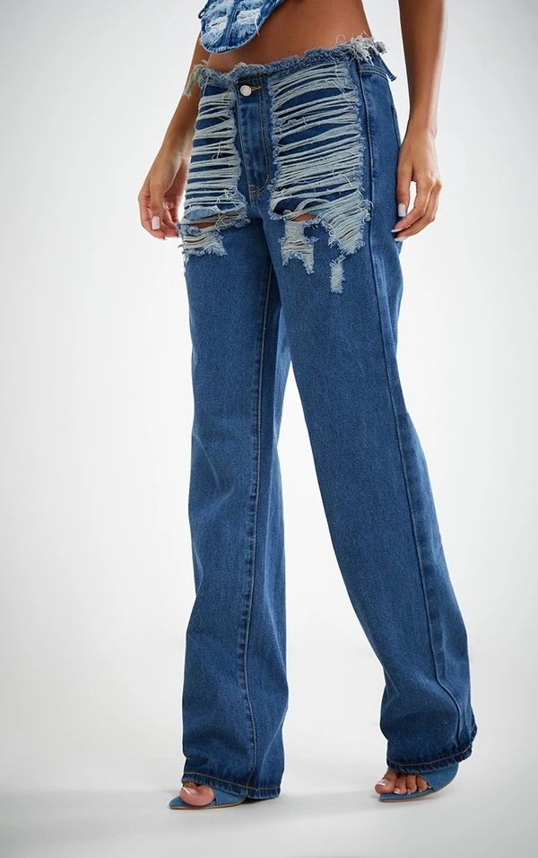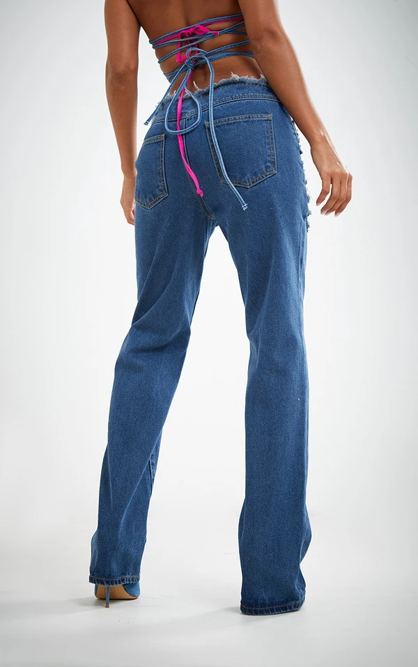 Le flow est dingue avec ce jean ! On craque pour sa coupe droit très tendance, pour son coloris indigo canon et pour son design déchiré sur les cuisses. Portez-le avec un top bustier et une paire de talons pour un look au top. Une tenue à poster sur Insta, ça !