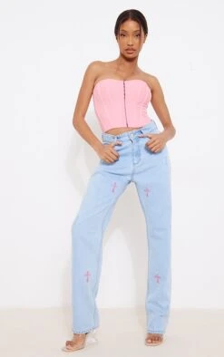 On est in love de ce jean long ! Avec sa coupe droite tendance, sa couleur bleu clair et son design à croix imprimées en pastel, on l’adore. Portez-le avec un top bustier et une paire de talons pour vous démarquer à la prochaine soirée. What a babe !