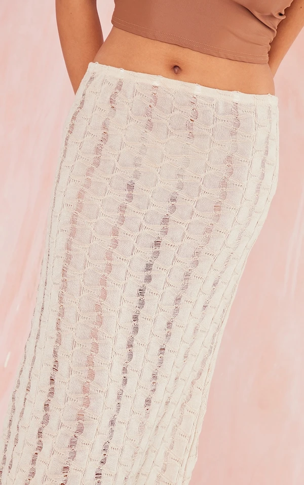 Jupe droite longue beige en jersey texturé
