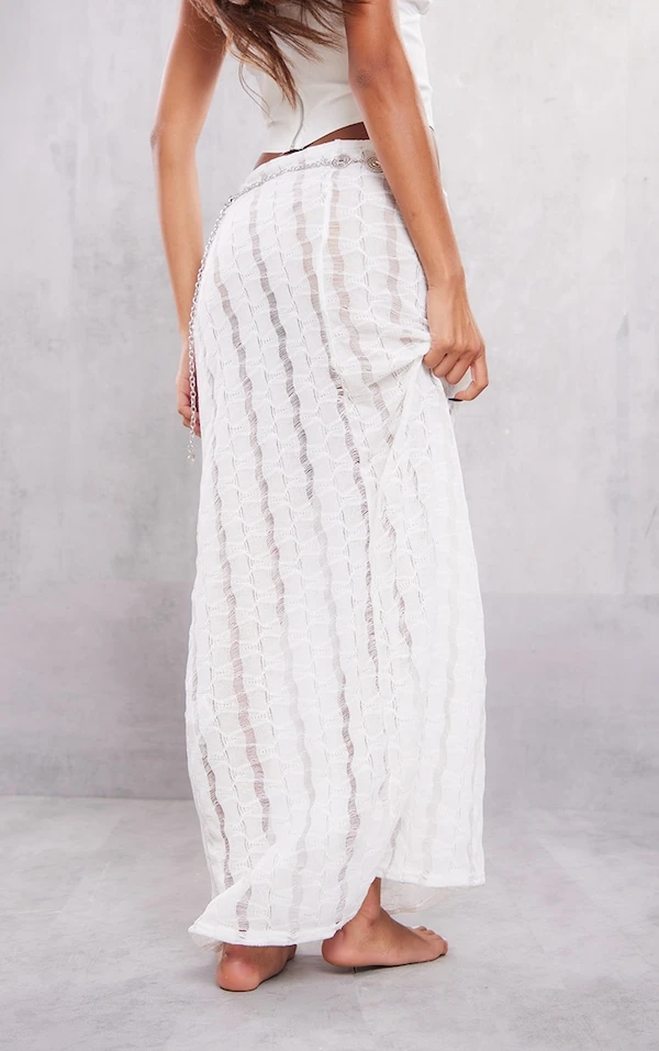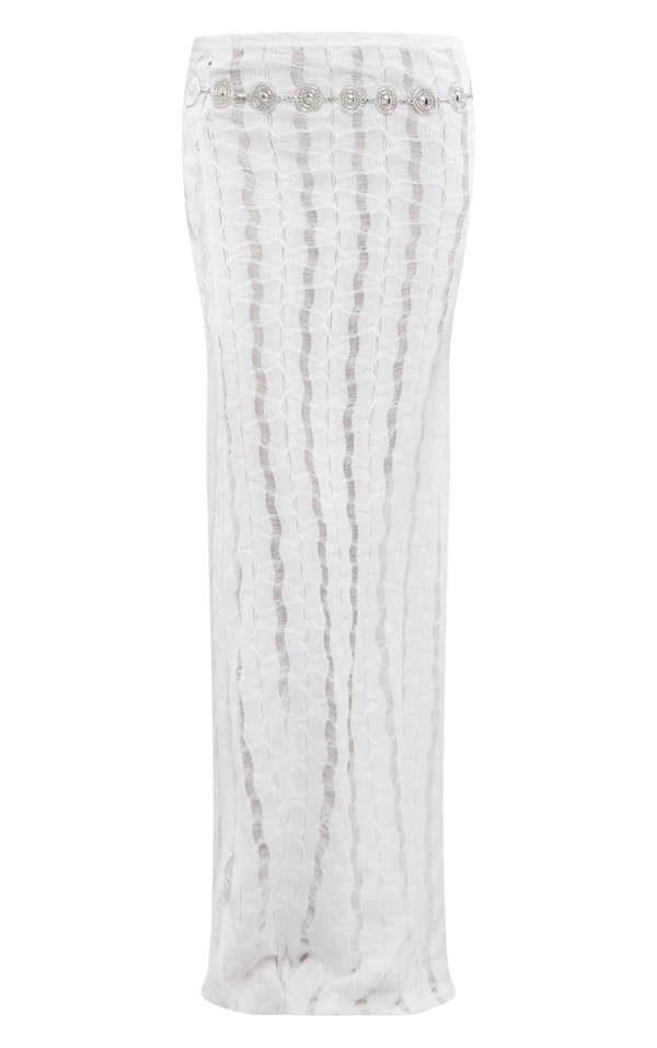 Jupe droite longue blanche en jersey texturé