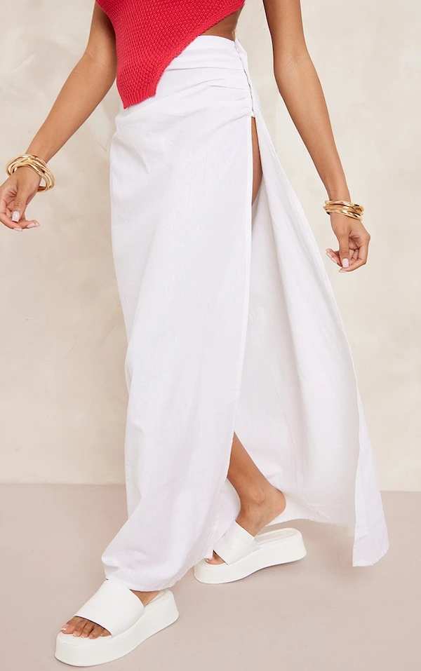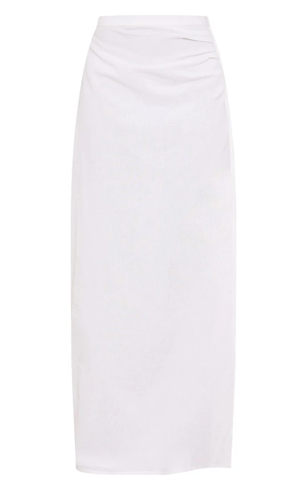 Jupe longue blanche effet lin à bande taille froncée et agrafes & oeillets