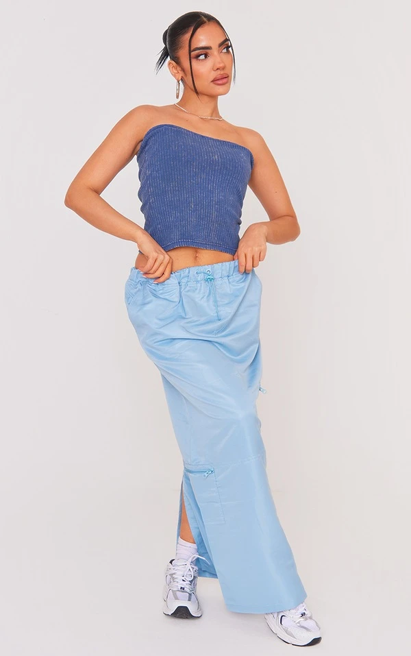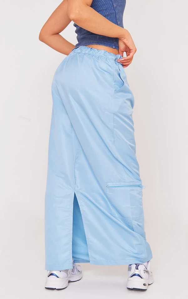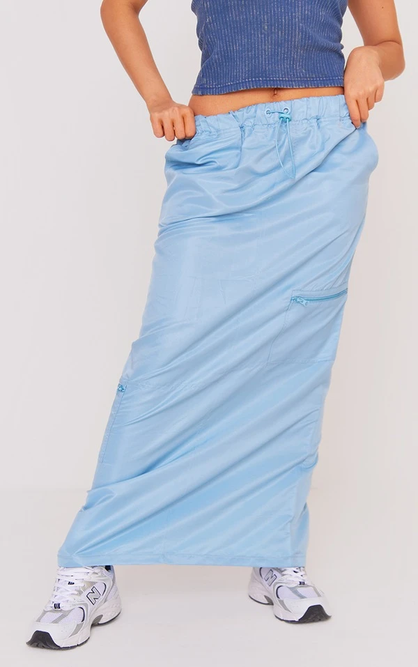 Tellement stylée, cette jupe longue ! On est fans de son coloris bleu ciel magnifique et de son design à cordons ajustables pratique. On vous conseille de la porter avec un top bandeau et des baskets pour un flow remarquable. La reine du style, vous !