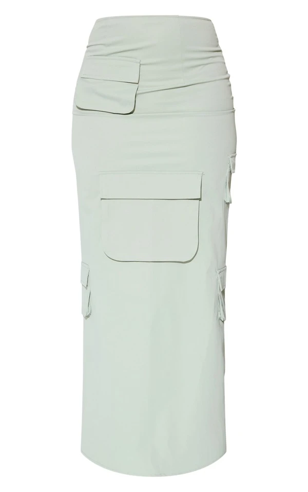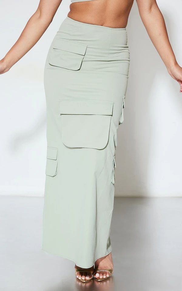 Jupe longue cargo vert sauge kaki à poches