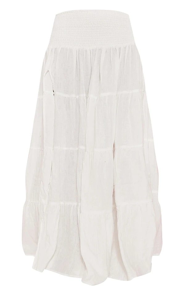 Jupe longue en étamine à étages crème