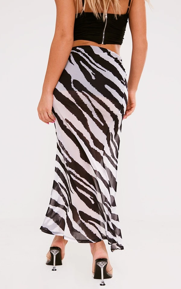 Jupe longue en mesh dévoré imprimé zébré à fente sur la cuisse