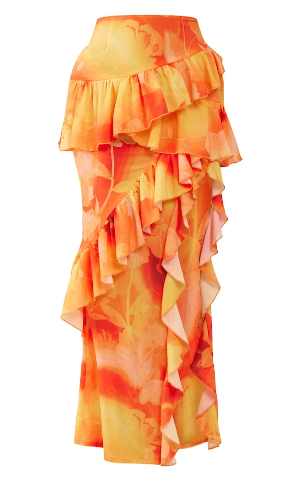 Avec sa couleur orange qu’on adore et son design à volants, c’est impossible de se louper. Enfilez cette jupe avec une bralette, une paire de sandales plates et quelques accessoires. Tous les regards sont braqués sur vous !