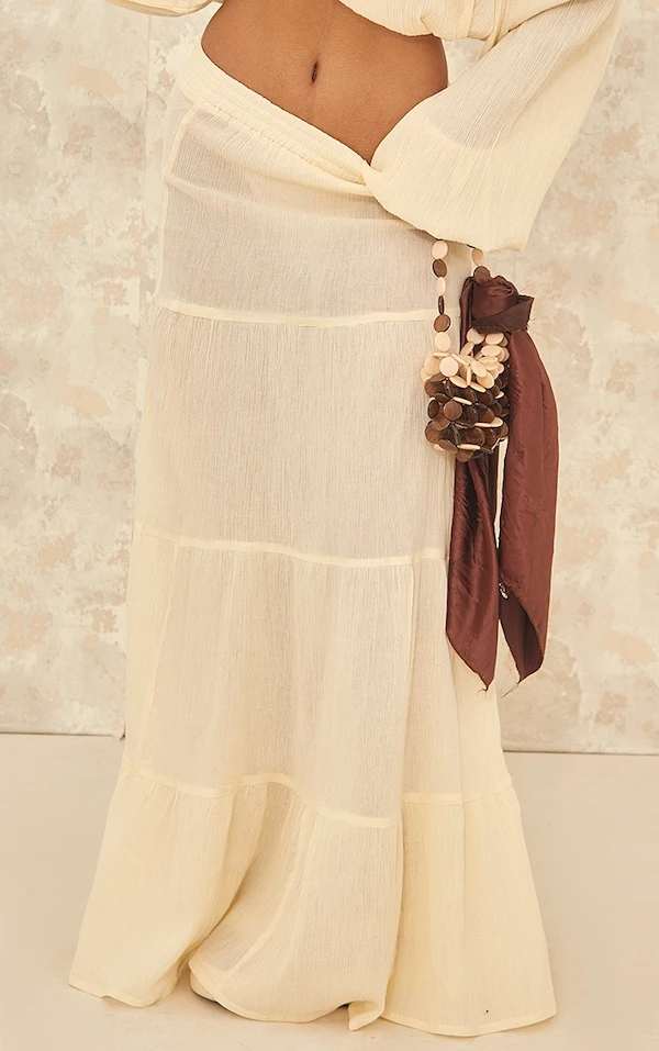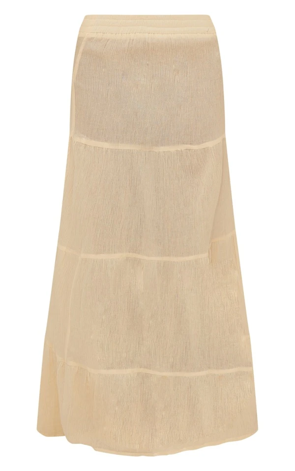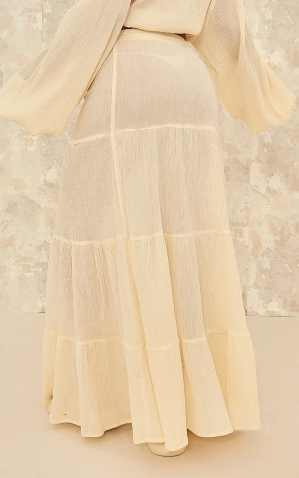 Jupe longue fluide en étamine jaune pastel à étages