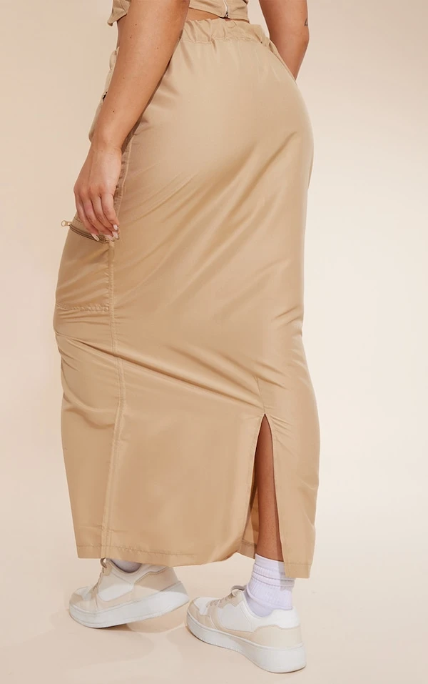 Jupe longue gris pierre à zip et cordons ajustables