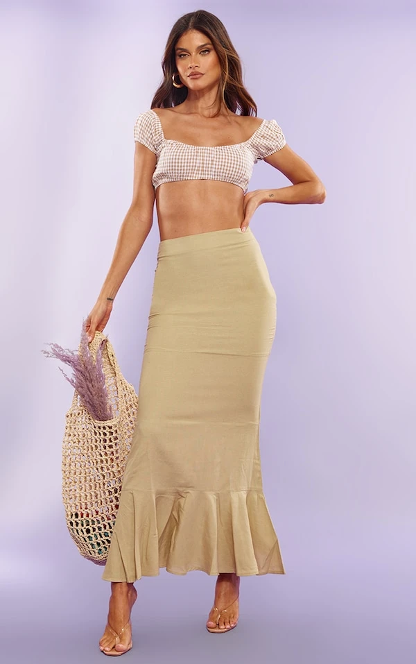 Trop belle, cette jupe sirène à la coupe longue ! Avec sa couleur vert sauge qu’on adore, sa matière en effet lin et le détail de ses coutures, cette pièce est juste iconic. Portez-la avec un top bustier et une paire de talons pour assurer un max de style. Une vraie fashionista, vous !